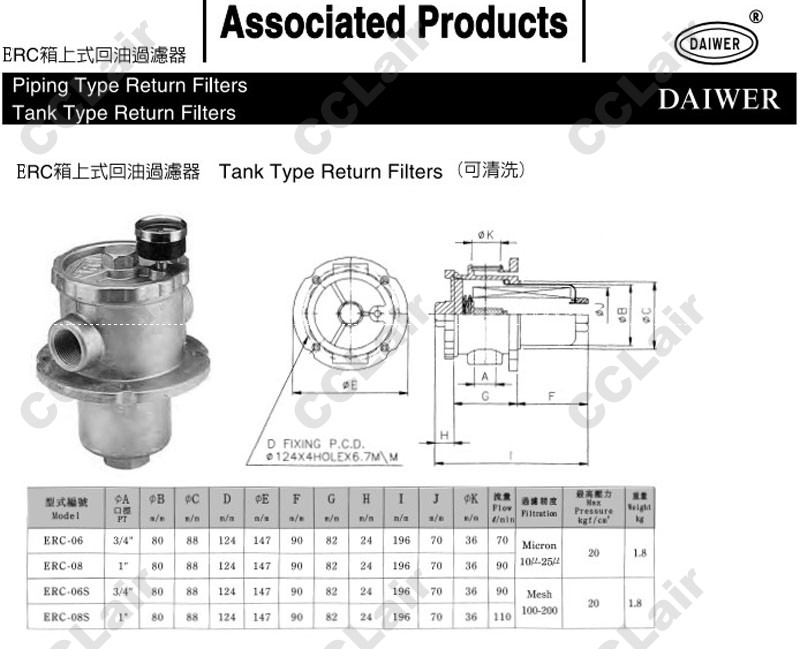 ERC-06,ERC-08,ERC-06S,ERC-08S,DAIWER箱上式回油過濾器