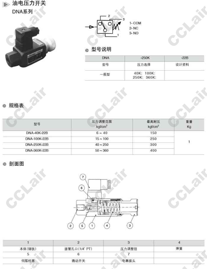 DNA-40K-22B,DNA-100K-22B,DNA-250K-22B,DNA-360K-22B,油電壓力開(kāi)關(guān),無(wú)錫昌林