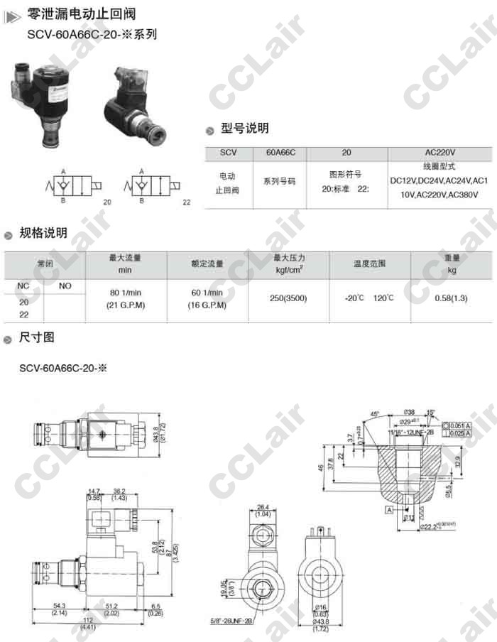 SCV-60A66C-20,SCV-60A66C-22,SCV-60A66C-20-DC12V,SCV-60A66C-20-DC24V,零泄漏電動止回閥