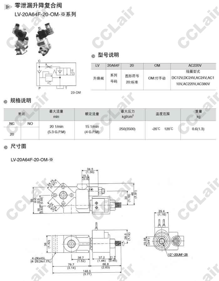 LV-20A64F-20,LV-20A64F-20-OM-DC12V,LV-20A64F-20-OM-DC24V,LV-20A64F-20-OM-AC24V,零泄漏升降復合閥
