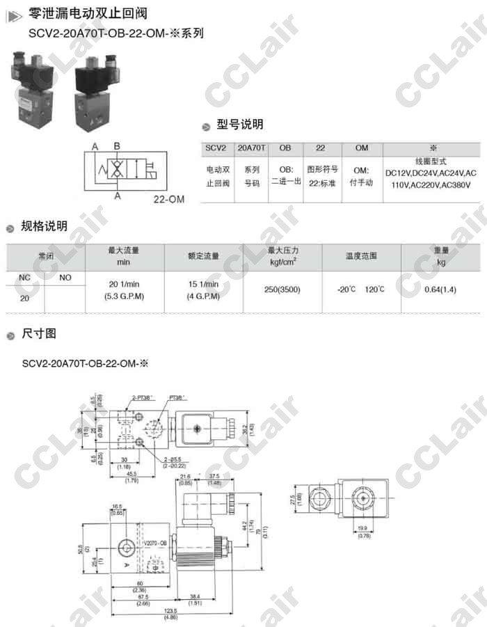 詳細(xì)信息 SCV2-20A70T-OB-22-OM-DC12V,SCV2-20A70T-OB-22-OM-DC24V,SCV2-20A70T-OB-22-OM-AC110V,零泄漏電動(dòng)止回閥