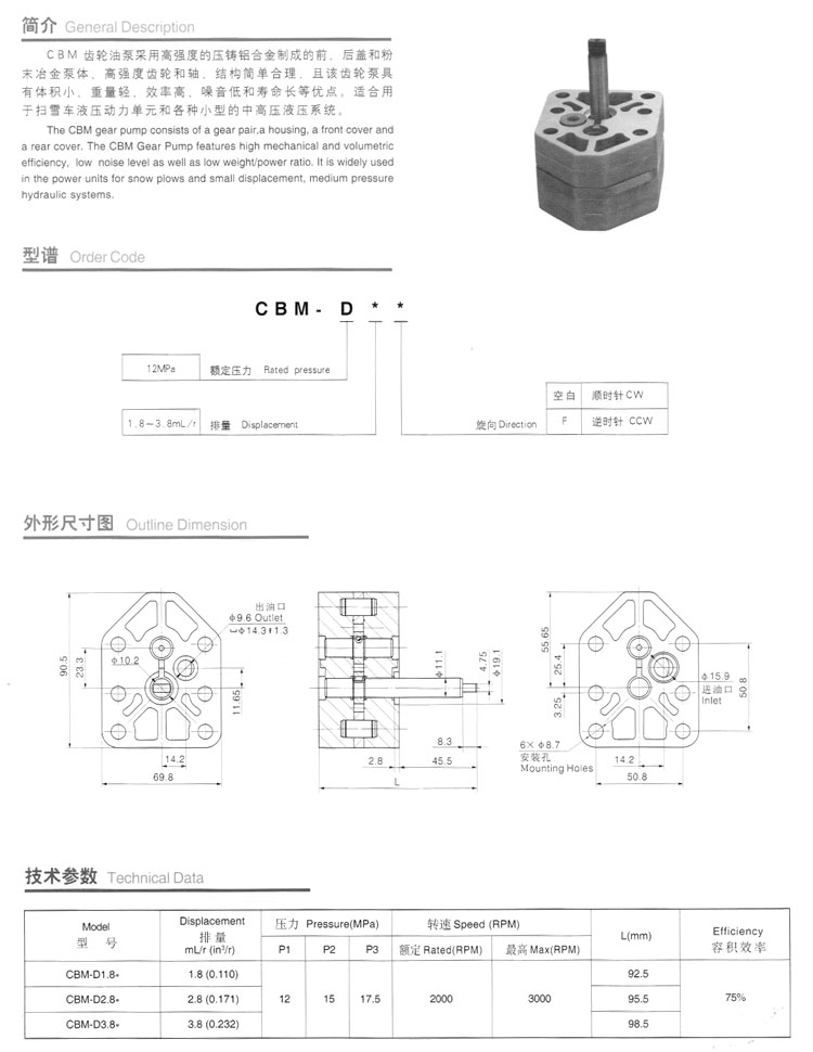詳細(xì)信息 CBM-D1.8,CBM-D2.8,CBM-D3.8,CBM-D1.8F,CBM-D2.8F,CBM-D3.8F,齒輪泵