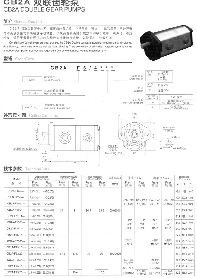 CB2A-F6/4,CB2A-F7/4,CB2A-F11/7,CB2A-F11/9,CB2A-F11/11,CB2A-F15/7,CB2A-F23/7,CB2A-F25/25,雙聯(lián)齒輪泵