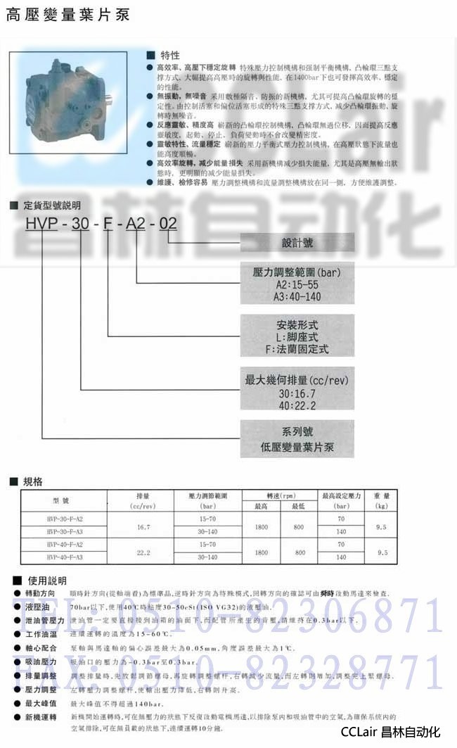 HVP-40-F-A2,HVP-40-F-A3, HVP-40-L-A2,HVP-40-L-A3, 高壓變量葉片泵
