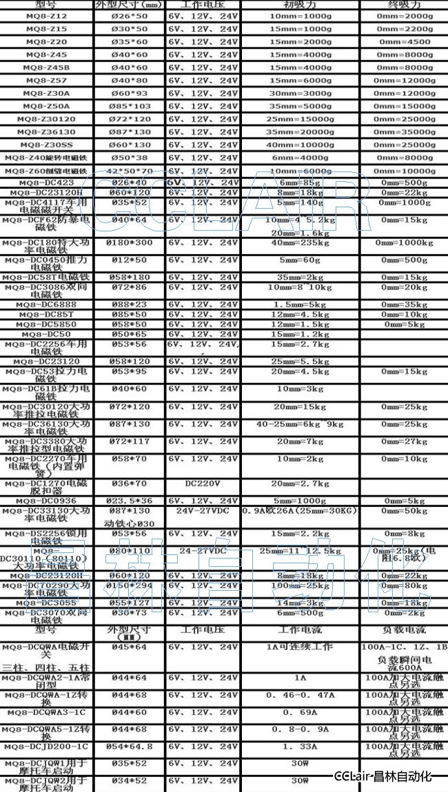 吸盤電磁鐵 直流電磁鐵 自保持電磁鐵 機(jī)械閥 牽引電磁鐵