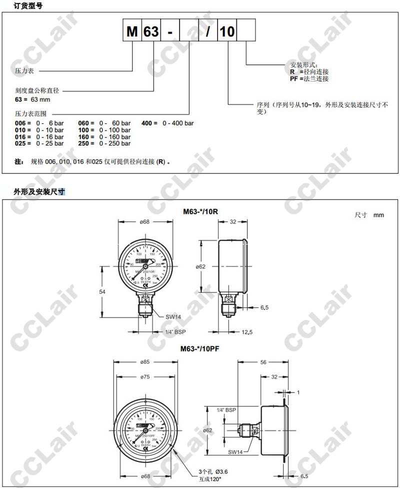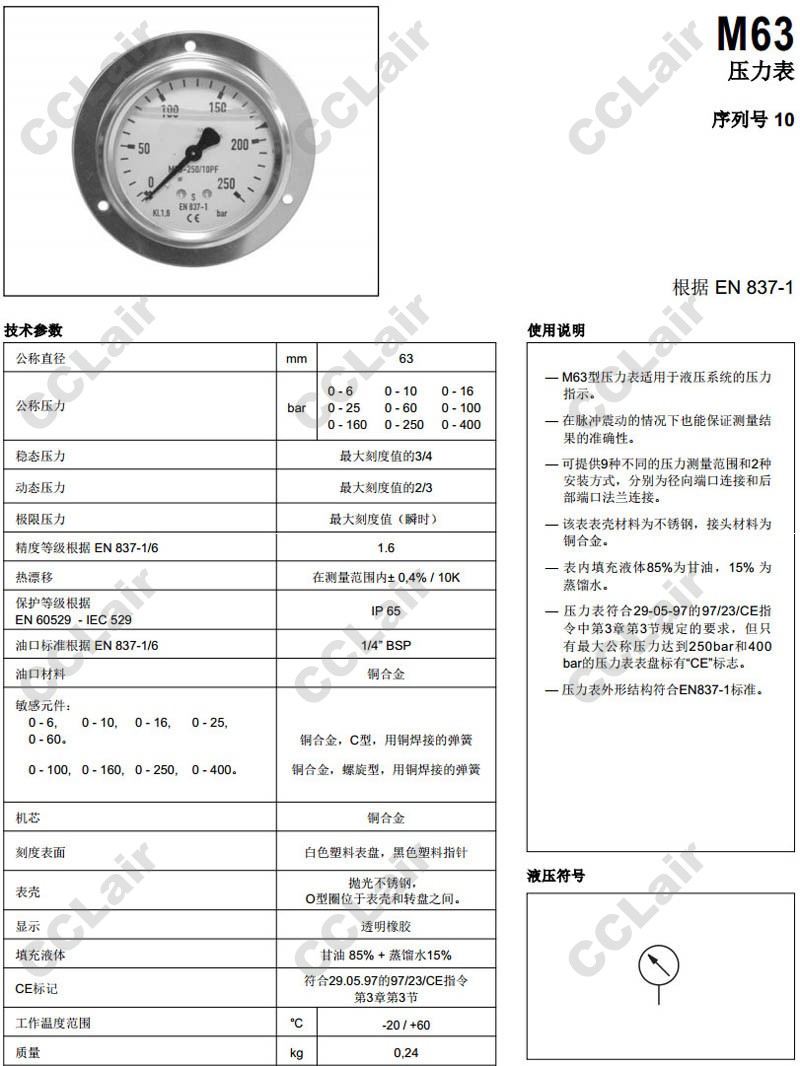 M63-006/10R,M63-010/10R,M63-016/10R,M63-025/10R,M63-060/10R,M63-100/10R,M63-160/10PF,M63-250/10PF,M63-400/10PF,壓力表