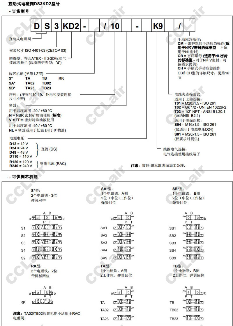 DS3KD2-S1/10N-D12K9T01/CM,DS3KD2-SB2/10N-D12K9T01/CM,DS3KD2-TA23/10NL-D12K9T01/CM,DS3KD2-RK/10NL-D24K9T01/CM,直動(dòng)式電磁閥