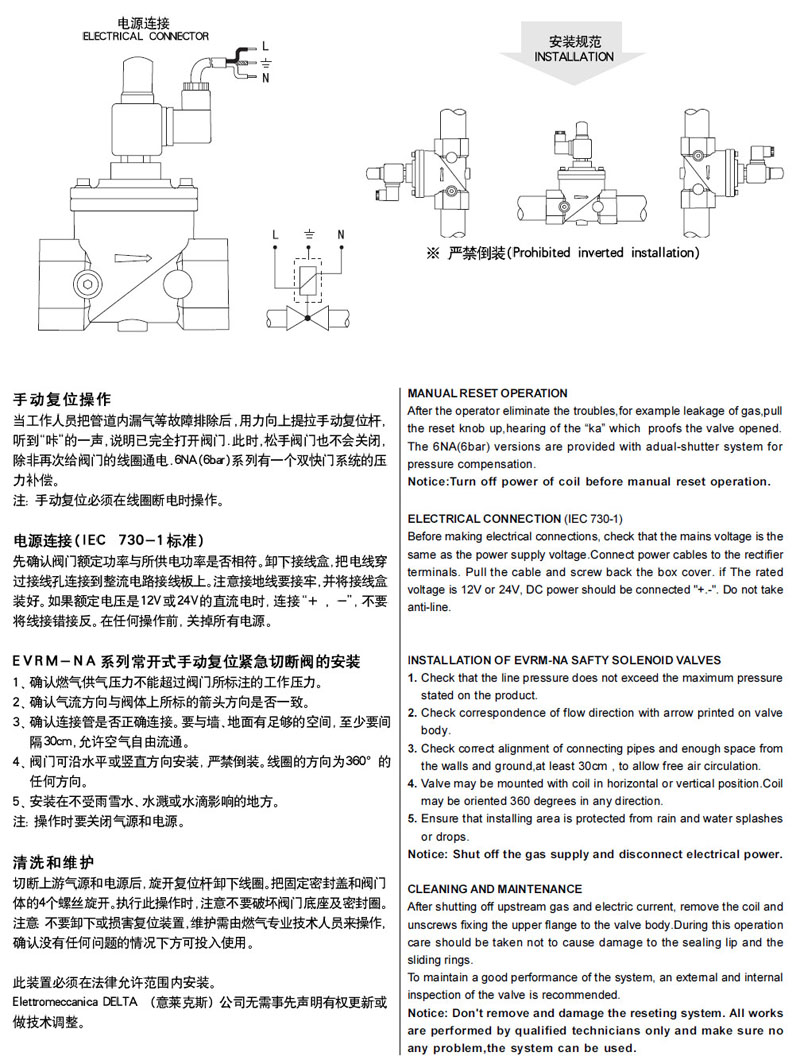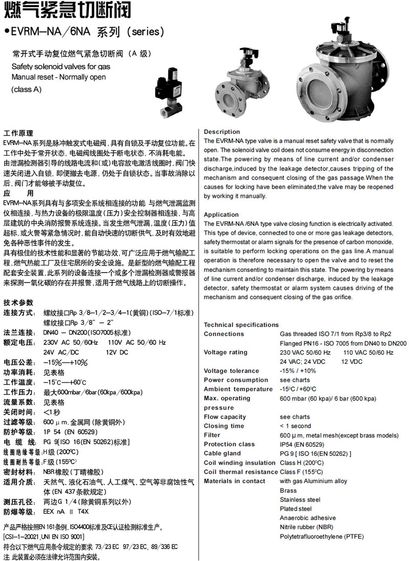 詳細信息 EVRM-NA0/OT,EVRM-NA1/OT,EVRM-NA2/OT,EVRM-NA3/OT,EVRM-NA4,elektrogas燃氣緊急切斷閥