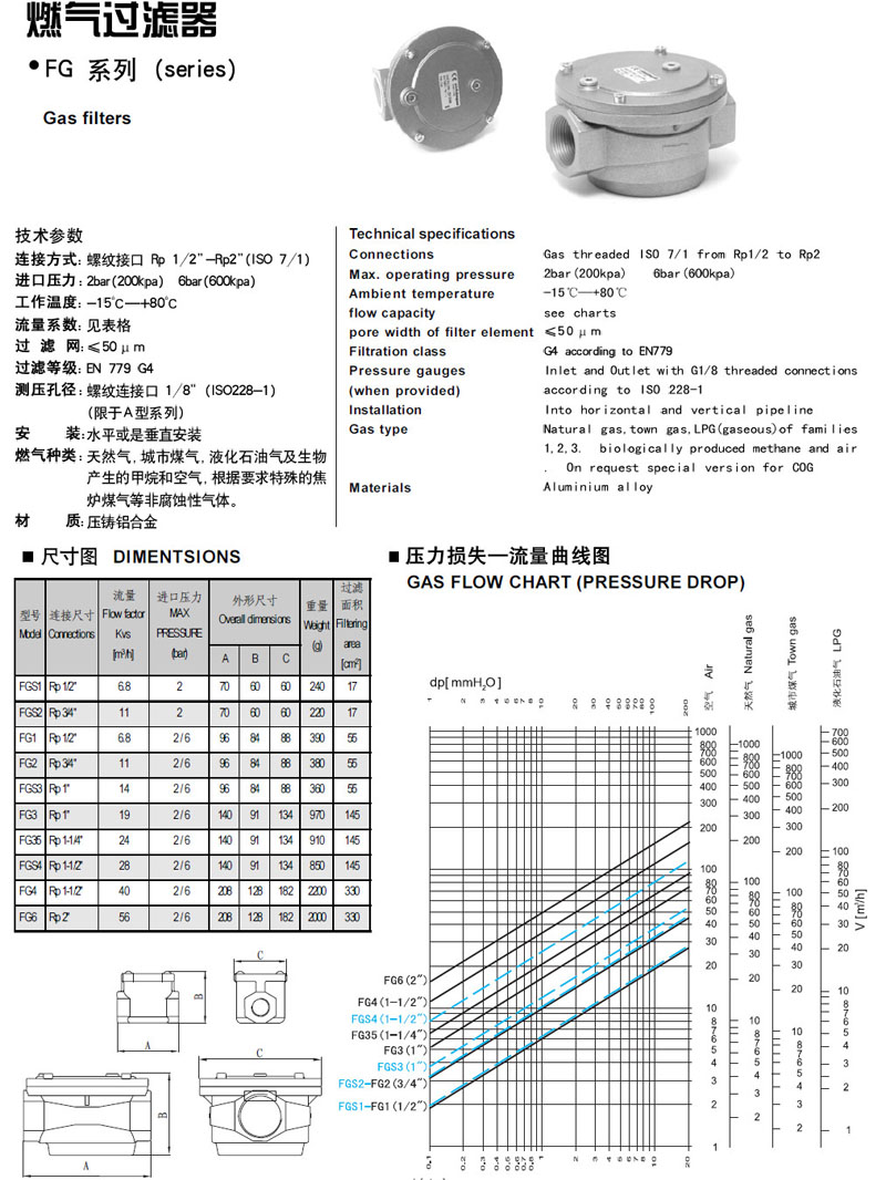 FGS1,FGS2,FG1,FG2,FGS3,FG3,FG35,FGS4,FG4,FG6,elektrogas燃氣過濾器