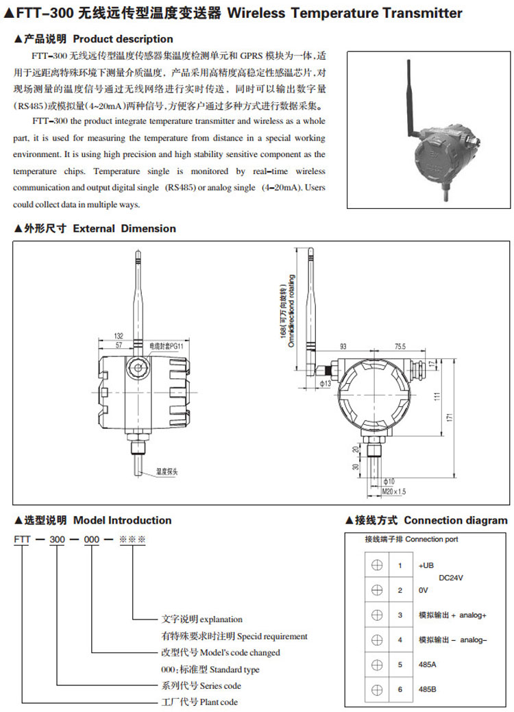 詳細(xì)信息 FTT-300,無(wú)線(xiàn)遠(yuǎn)傳型溫度變送器