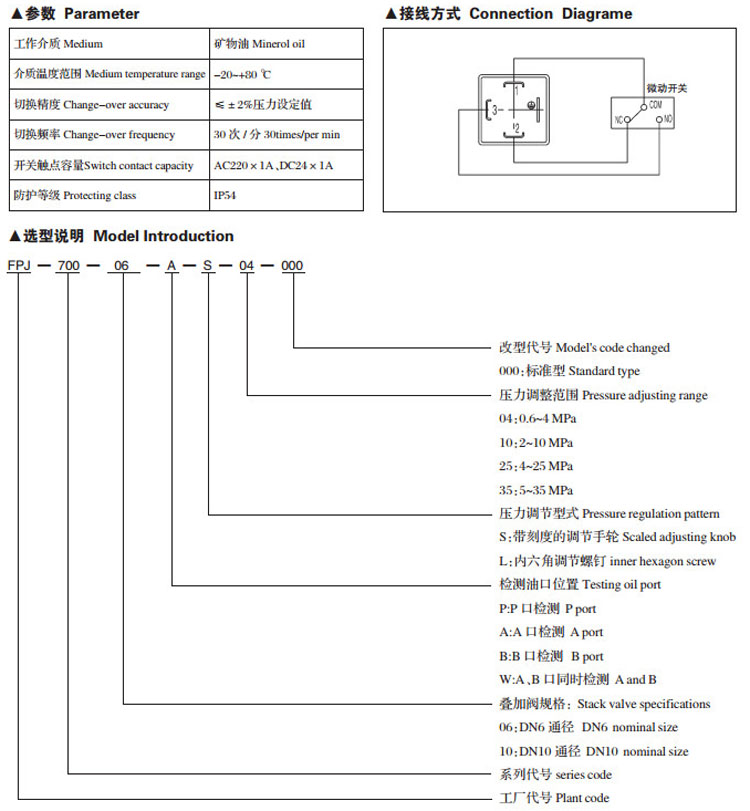 FPJ-700-06,FPJ-700-10,疊加式壓力繼電器
