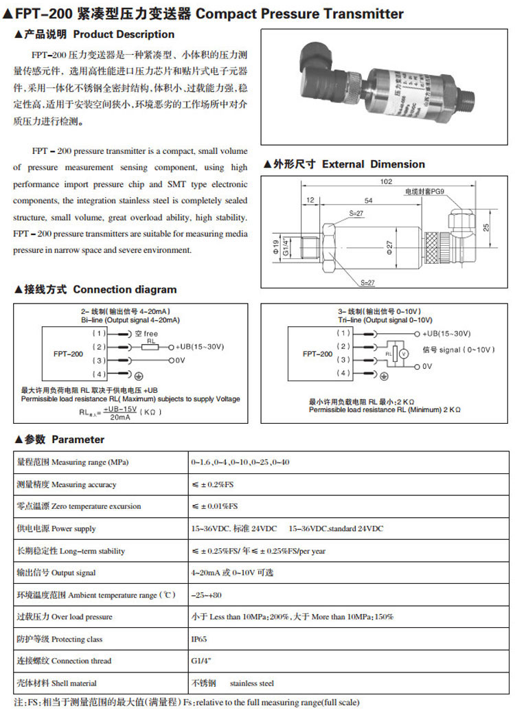 您當(dāng)前的位置:首頁(yè) » 產(chǎn)品&解決方案 » FPT-200,緊湊型壓力變送器