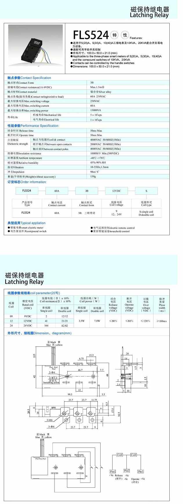瀏覽次數(shù):554FLS524-60A,磁保持繼電器 |