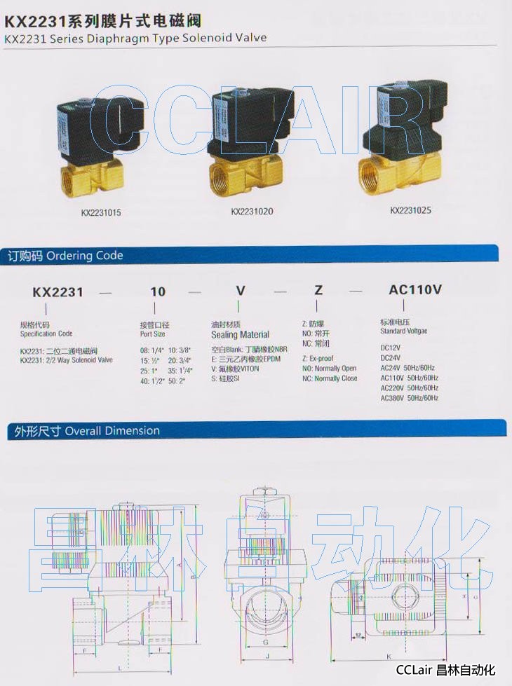 詳細信息 KX2331008,KX2331010,KX2331015,KX2331020,膜片式電磁閥