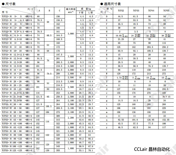 無錫昌林TCP44-L31.5-50-MR1,TCP44-L40-40-MR1,