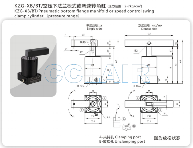 詳細信息 KZG-XB32,KZG-XB40,KZG-BT50,KZG-BT63,空壓下法蘭板式或調速轉角缸,無錫昌林