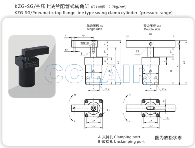 詳細(xì)信息 KZG-SG32,KZG-SG40,KZG-SG50,KZG-SG63,空壓上法蘭配管式轉(zhuǎn)角缸