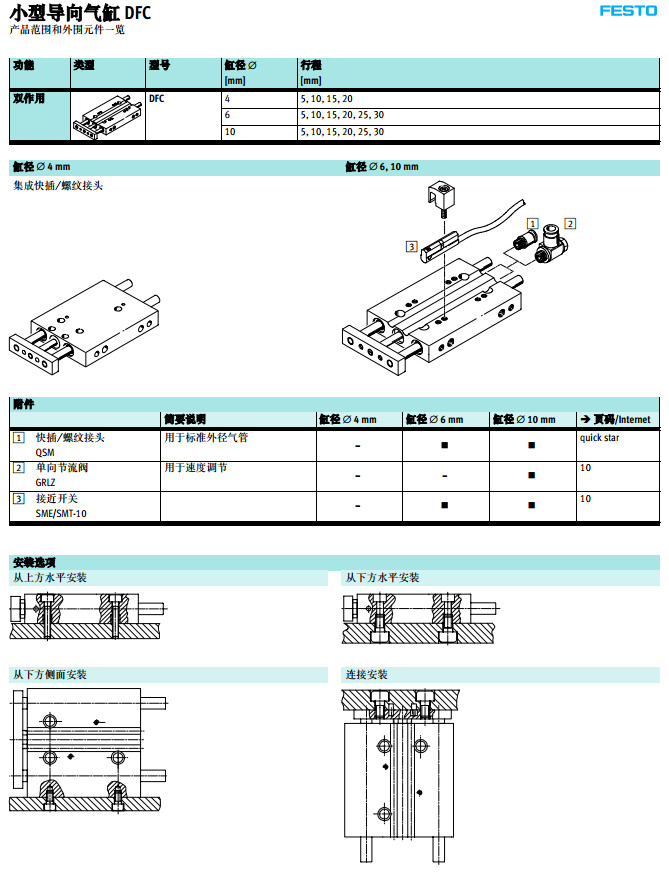 DFC-4-5,DFC-4-10,DFC-6-15,DFC-6-20,DFC-10-25,festo小型導(dǎo)向氣缸