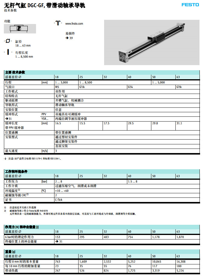 DGC-18-1000-GF,DGC-25-1000-GF,DGC-32-1000-GF,DGC-40-1000-GF,festo無桿氣缸 |