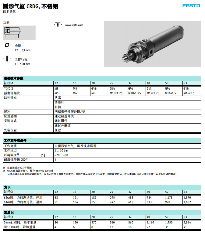 CRDG-12,CRDG-16,CRDG-20,CRDG-25,CRDG-32,CRDG-40,festo圓形氣缸