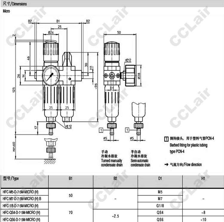 HFC-M5-D-7-5M-MICRO,HFC-M7-D-7-5M-MICRO,HFC-1/8-D-7-5M-MICRO,HFC-QS4-D,HFC-QS6-D,氣源處理裝置