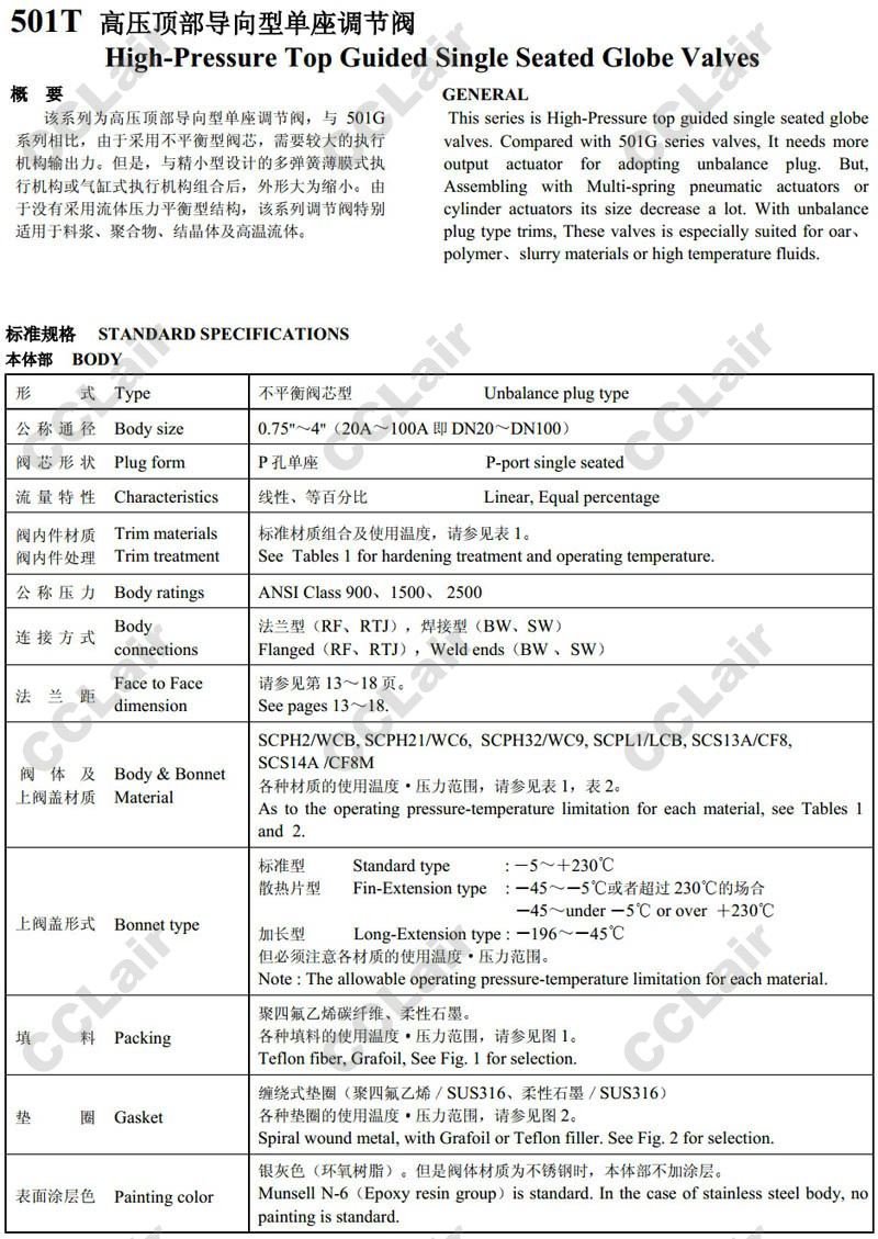 501T-5200LA,501T-6300LA,高壓頂部導向型單座調(diào)節(jié)閥