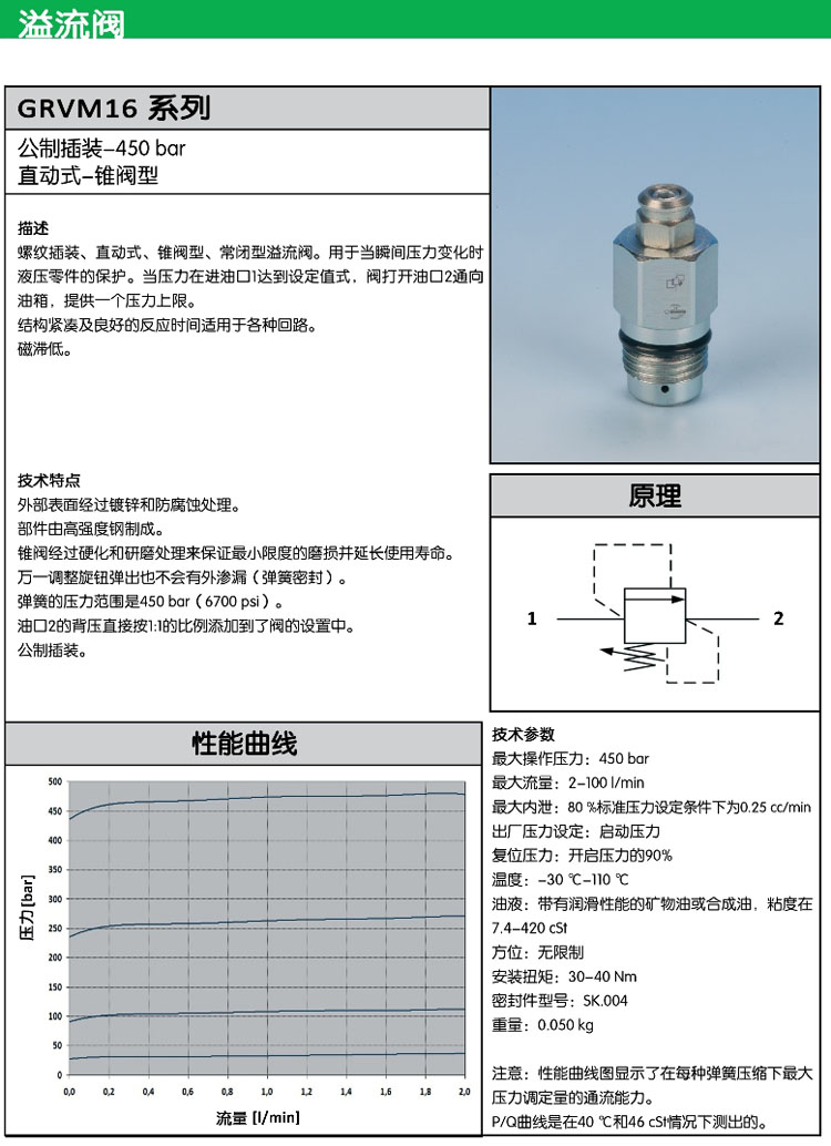 GRVM16,溢流閥