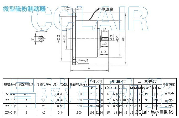 CZW-0.05,CZW-0.1,CZW-0.2,CZW-0.5,單出軸微型磁粉制動器