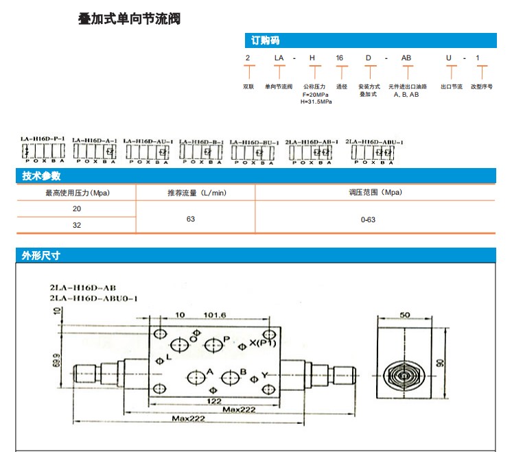 LA-H16D-P-1,LA-H16D-A-1,LA-F16D-AU-1,2LA-H16D-ABU-1,疊加式單向節(jié)流閥