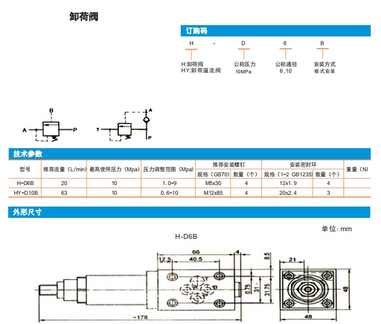 H-D6B,HY-D10B,卸荷閥