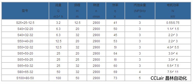 S65×50-20,S65×50-25,S65×50-32,S80×65-32,S100×80-50,