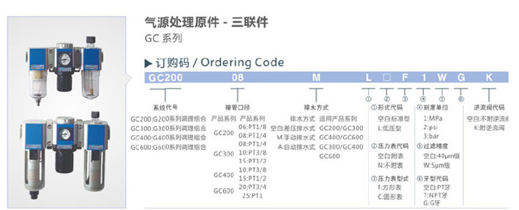 您當(dāng)前的位置:首頁(yè) » 產(chǎn)品&解決方案 » GC200-06,GC200-08,GC300-10,GC300-15,GC300-10A,GC300-15A,GC400-10M,氣源處理件--三聯(lián)件
