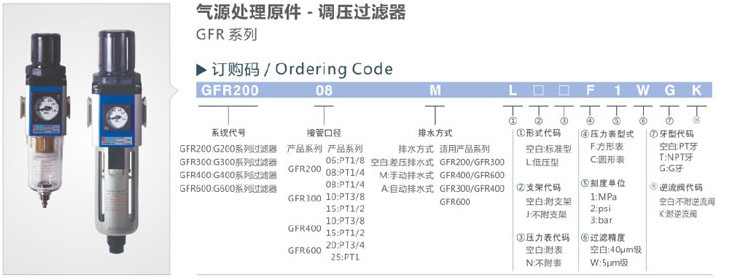 GFR200-06,GFR200-08,GFR300-08,GFR300-10,GFR300-15,GFR400-10,氣源處理件--調(diào)壓過濾器