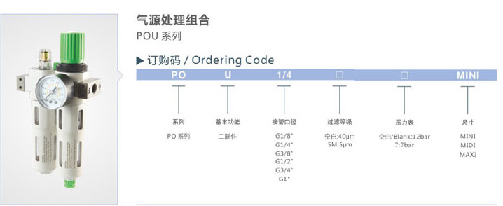 產(chǎn)品: 瀏覽次數(shù):1099POU-1/8,POU-1/4,POU-3/8,POU-3/4,POU-1/2,POU-1,氣源處理組合