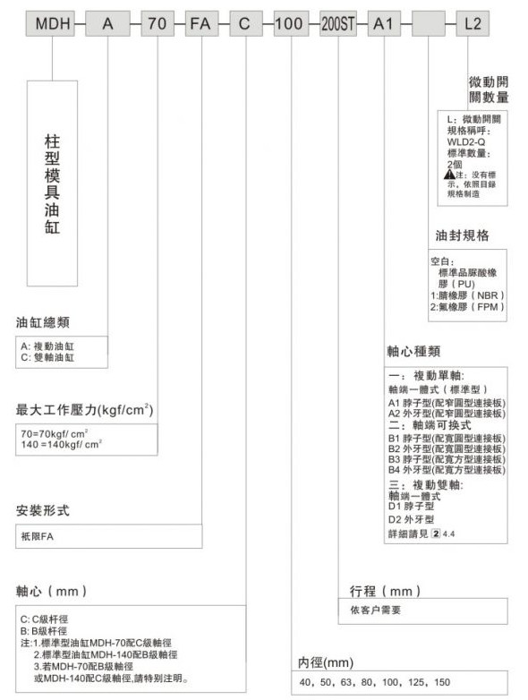 MDH-A-70-FA-C-40,MDH-A-70-FA-C-50,MDH-A-70-FA-C-63,MDH-A-70-FA-C-80,柱形模具油缸MDH系列