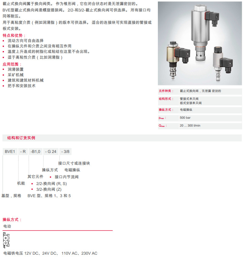 詳細(xì)信息 BVE1-R-B1.0-G24-3/8,BVE3-S-B1.0-G24-3/8,BVE5-Z-B1.0-G24-3/8,截止式換向閥
