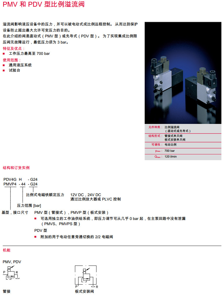 詳細(xì)信息 PDV3GH-G24,PDV4GH-G24,PMVP4-44-G24,PMV5-44-G24,比例溢流閥