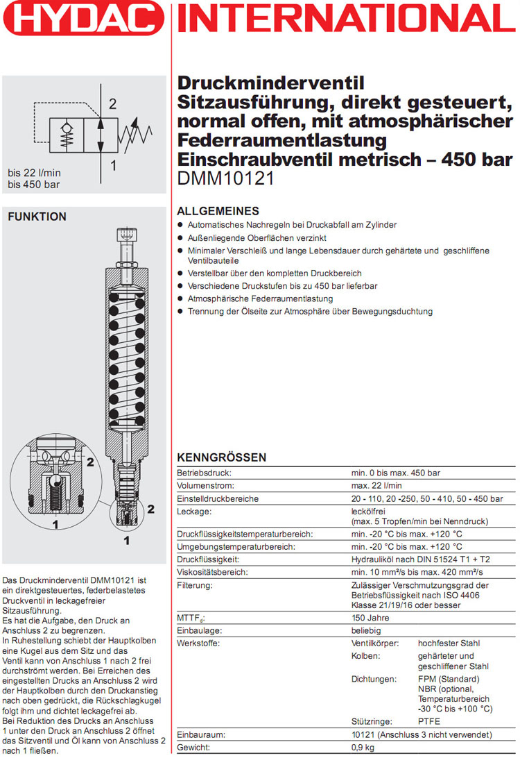 DMM10121-01-C-V-110V,DMM10121-01-C-V-250V,DMM10121-01-C-V-410V,DMM10121-01-C-V-450V,HYDAC直行2路減壓閥