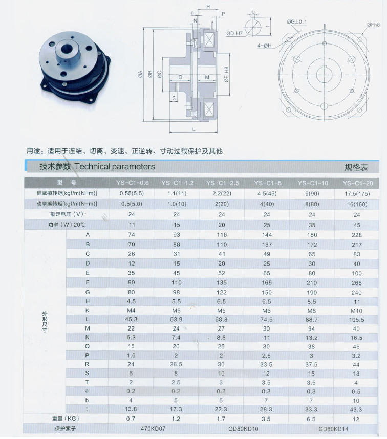 YS-C1-0.5,YS-C1-1.2,YS-C1-2.5,YS-C1-5,YS-C1-10,YS-C1-20,干式單板標(biāo)準(zhǔn)超薄型電磁離合器