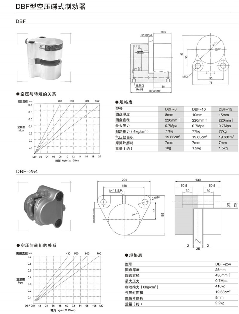 空壓蝶式制動(dòng)器DBF-8,DBF-10,DBF-15,DBF-254