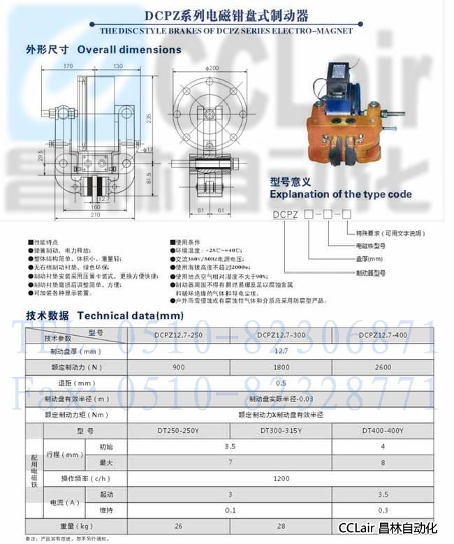 DCPZ12.7-250,DCPZ12.7-300,DCPZ12.7-400,電磁鉗盤式制動(dòng)器