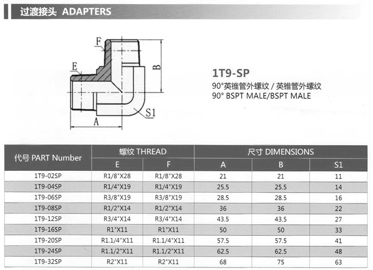 詳細(xì)信息 1T9-02SP,1T9-04SP,1T9-06SP,1T9-08SP,1T9-12SP,1T9-16SP,1T9-20SP,1T9-24SP,1T9-32SP,過渡接頭