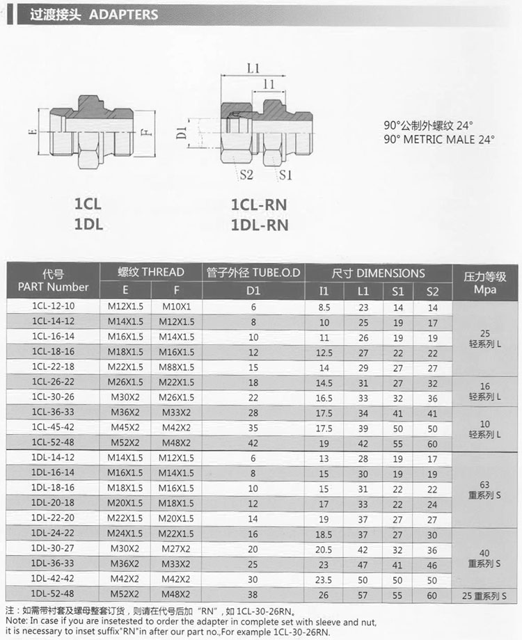 詳細(xì)信息 1DL-14-12,1DL-16-14,1DL-18-16,1DL-20-18,1DL-22-20,1DL-24-22,1DL-30-27,1DL-36-33,過渡接頭 1DL-42-42,1DL-52-48,