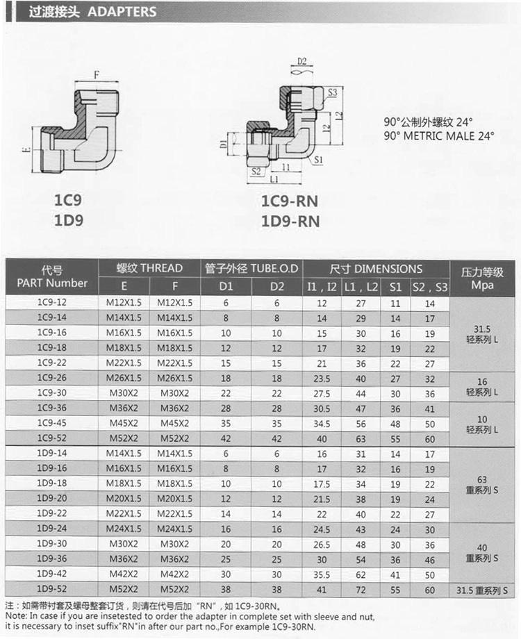 1C9-12,1C9-14,1C9-16,1C9-18,1C9-22,1C9-26,1D9-30,1D9-36,1D9-42,1D9-52,過渡接頭