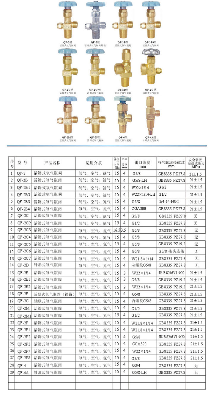 QF-2,QF-2B,QF-2C,QF-2D,QF-2E,QF-2F,QF-2G,QF-2M,QF-2P,QF-4,QF-4A,瓶閥