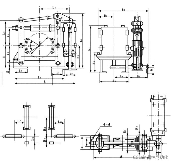 3.電磁鐵安裝在調(diào)整桿的一端,當(dāng)其通電動(dòng)作時(shí),帶動(dòng)調(diào)整桿使主彈簧壓縮,這時(shí)兩片閘瓦即張開,回轉(zhuǎn)機(jī)構(gòu)可發(fā)正常進(jìn)行。當(dāng)電磁鐵通電時(shí)帶動(dòng)調(diào)整桿反方向移動(dòng),這時(shí)主彈簧之彈性壓力將閘瓦緊壓向回轉(zhuǎn)的抽動(dòng)輪上,而使機(jī)構(gòu)停止運(yùn)動(dòng)。
