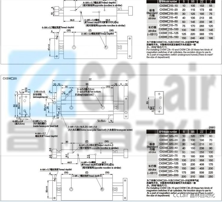CXSWM15-150,CXSWM20-125,CXSWM20-150,CXSWM20-175,CXSWM20-200,CXSWM25-125,通桿型氣缸