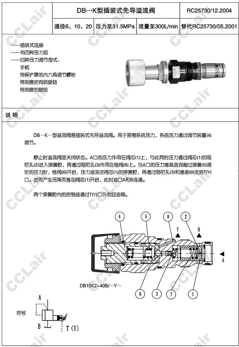 DB6K,DB10K,DB20K,DB6K1-40,DB10K1-40,DB20K1-10,DB10K7-40,huade插裝式先導(dǎo)溢流閥