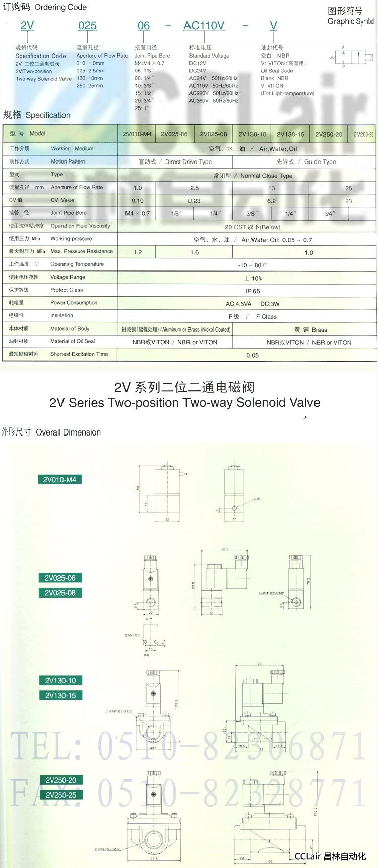 2V010-M4,2V025-06,2V025-08,2V130-10,2V130-15,二位二通電磁閥