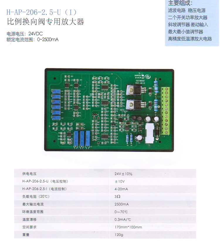 H-AP-206-2.5-U,H-AP-206-2.5-I,比例換向閥專用放大器